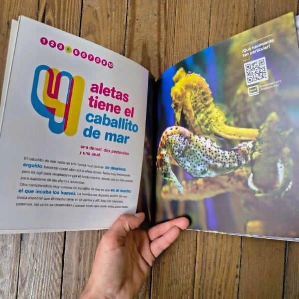 1 señuelo luminoso tiene el pez rape, 2 ojos del mismo lado tiene el lenguado, 3 dedos unidos por una membrana tiene el pingüino, 4 aletas tiene el caballito de mar… Un sorprendente recorrido desde el 1 hasta el 10, para descubrir algunos curiosos habitantes del mar. Bellísimas fotografías y una estética innovadora y atractiva, ideal para iniciarse en la lectura de libros informativos.