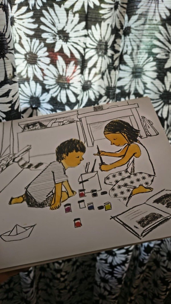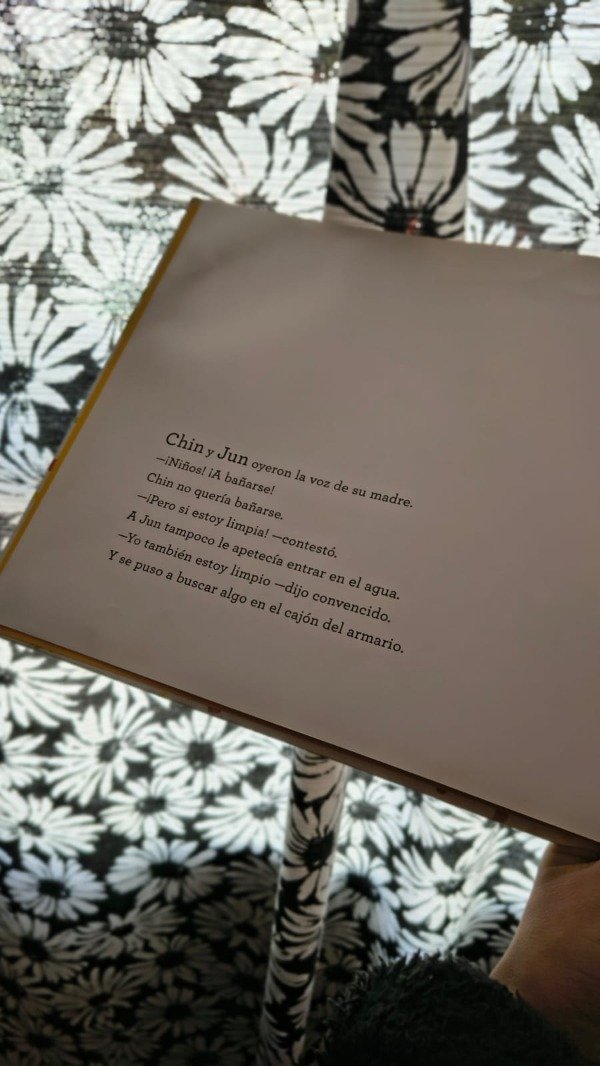Ha llegado la hora del baño. La madre de Chin y Jun los llama calurosamente, pero los niños sienten que están demasiado limpios para entrar al agua. Entonces Jun encuentra una caja de acuarelas y le propone a su hermana un divertido juego: pintarse el cuerpo. Los pequeños pintores pasan así la tarde, entre pinceles y colores que los convierten en gatos, indios o marinos y los llevan a los paisajes más extraordinarios.