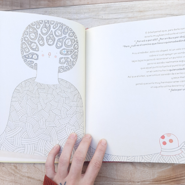De un árbol crecen semillas que con el viento se desprenden para volar a quiensabedónde, crecer para ser árboles y poder hablar. Pero un día una semilla se queda atrás y permanece en la rama del cerezo. Y así, bajo la promesa de que la semilla podrá quedarse “sólo un día más”, pasan los días… el árbol ya no quiere perder su compañía, pero ¿qué sucederá cuando un pájaro decide llevarse a la única semilla que nunca había volado a quiensabedónde? Escrito con mucha dulzura e ilustrado con trazos finos y pocos colores (por el mismo ilustrador que La isla del pequeño monstruo negro-negro), Quiensabedónde cuenta una historia que retrata la necesidad de tener libertad para crecer y el contrapunto de la sobreprotección. La simpleza de la ilustración sobre un fondo cálido y la transparencia de los trazos traducen tanto la dulzura e inocencia como la confianza en uno mismo y en el devenir. La repetición en el texto (“Un día más) marcará el ritmo de un viaje a quiensabedónde
