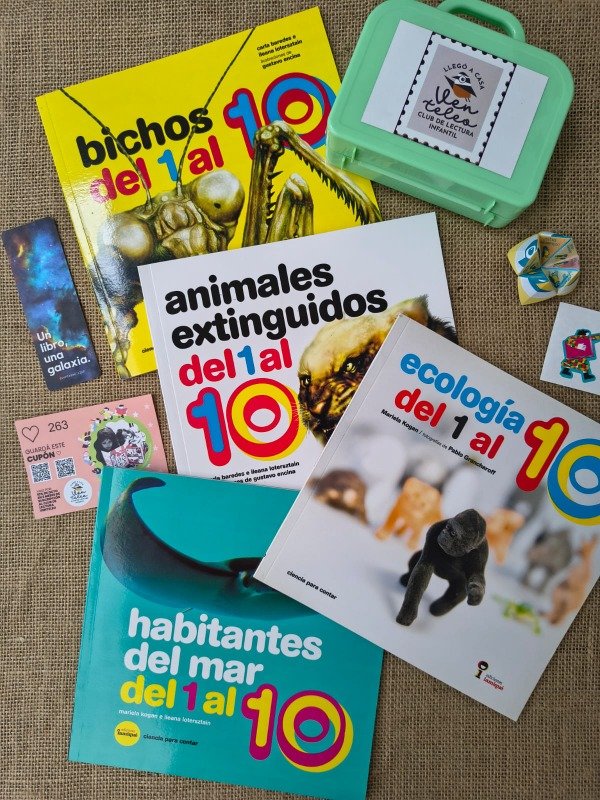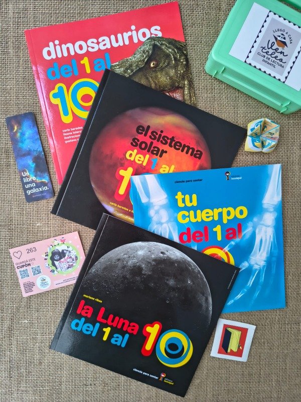 - 4 libros a elección de la coleccion del 1 al 10 de la editorial Iamiqué. Títulos disponibles: Animales extinguidos del 1 al 10, Bichos del 1 al 10, Dinosaurios del 1 al 10, Ecología del 1 al 10, El sistema solar del 1 al 10, Habitantes del mar del 1 al 10, La luna del 1 al 10, Tu cuerpo del 1 al 10.