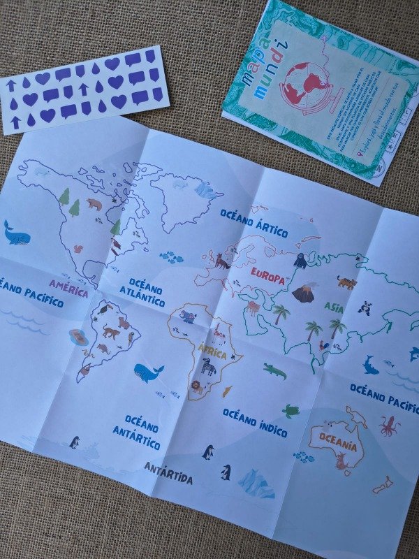 - Valija viajera: mapa + stickers para completar el mapa + pasaporte + sellos para completar el pasaporte.