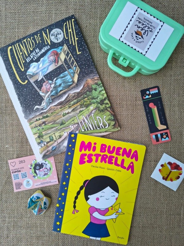 - Señalador ilustrado + sticker resistente al agua + juego comecocos + Cupón 10% off para el Club de Lectura.