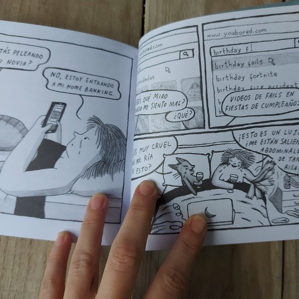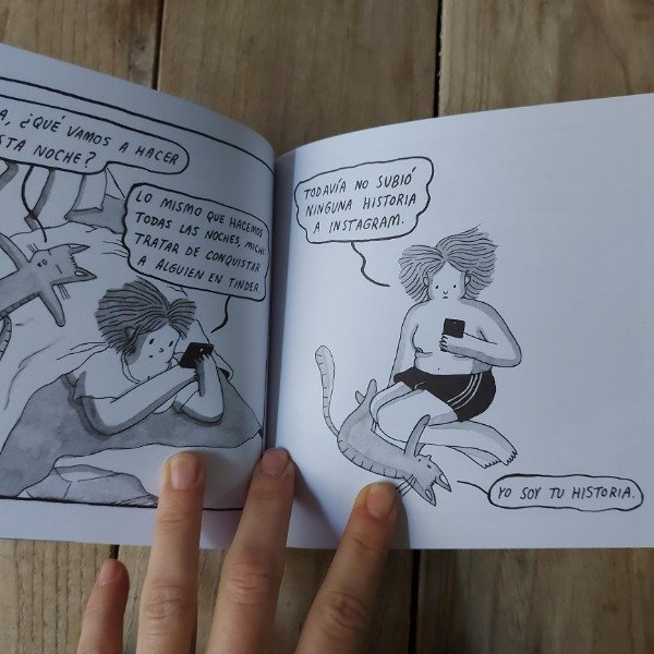 La protagonista de Al despertar abre los ojos y lo primero que ve es a su gato que además habla y le pregunta cuándo le va a cambiar las piedritas. Es que esta es la vida de una dibujante que tiene por roommate a su mascota: juntos transitan sus días entre levantes de tinder, canciones de Luis Miguel y reflexiones de la juventud.