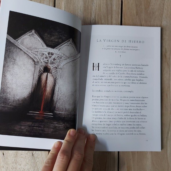 Con La condesa sangrienta, Alejandra Pizarnik alcanzó una de las cimas de la literatura, elaborando un retrato perturbador del sadismo y la locura. Santiago Caruso ha sabido recrear con sus magníficas estampas no sólo los pormenores de la historia, sino también los atroces sentimientos que la gobiernan.