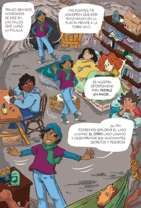 Es el Lago de Lugano, pero no es solo eso Algo extraño y fantástico se esconde en sus aguas y Juan está dispuesto a todo para encontrar un tesoro en sus profundidades, incluyendo tratos de dudosa calidad con una criatura un poco sospechosa. Es un barrio de Lugano, pero es un poco distinto… Sus ladrillos y caminos están unidos por algo más que cemento: hay también bastante magia en la mezcla. Y alguno de sus misterios tendrán que salir a la luz para que Rú, Caro, Oli y Dan salven a Juan del problema enorme que él mismo se armó. Una polilla, tres chusmas, bestias y criaturas; un balcón atestado y una guardiana subacuática y solitaria…Sumergite con Juan a la aventura, pero… Cuidado con lo que pedís!