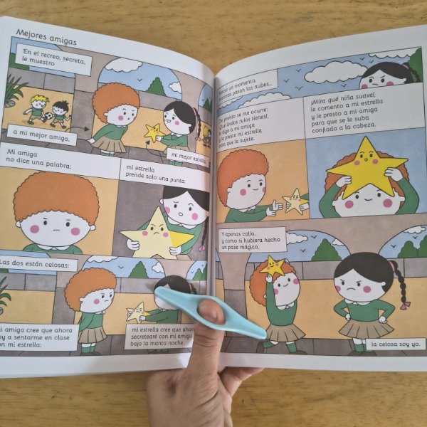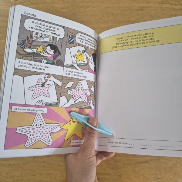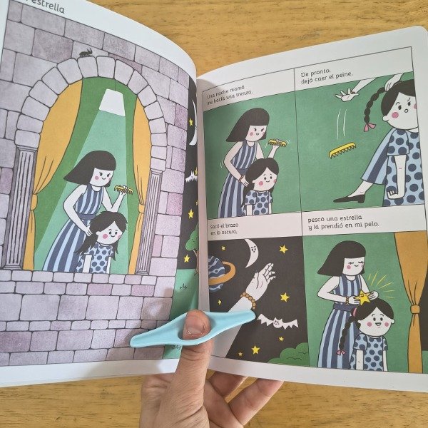 Entre la poesía y la historieta, Mi buena estrella crea un lenguaje propio donde cada verso se ilumina en una viñeta, y cada dibujo respira poesía. Una noche, mientras peina a su hija, la mamá de Luci pesca una estrella en el cielo y la prende en su trenza. Desde entonces, Luci y su estrella se vuelven inseparables: se acompañan en los juegos, en las noches accidentadas, en los recreos y hasta en los sueños. La estrella es una amiga, una confidente, un amuleto y también un espejo de la propia luz interior de Luci. Pero con el paso del tiempo, la niña descubre que su buena estrella tiene vida propia. ¿Se puede guardar una estrella para siempre? ¿O la verdadera amistad también implica aprender a soltar? Con la voz poética y cercana de Cecilia Pisos, y las ilustraciones de Gastón Caba, que combinan ternura, humor y un trazo contemporáneo, Mi buena estrella propone una lectura sensible, visual y rítmica. Cada poema-capítulo construye una escena mínima, una chispa de infancia donde el asombro y la ternura se entrelazan. Así, el libro va formando un relato completo, donde el vínculo entre Luci y su estrella atraviesa distintas etapas: la fascinación, el juego, los celos, el miedo, la pérdida y, finalmente, la comprensión. Mi buena estrella inaugura un nuevo género: el poecómic, un formato que une la musicalidad y la emoción de la poesía con la secuencia visual del cómic. Una historia sobre la luz que nos une, la amistad que nos guía y la libertad de dejar brillar lo que amamos.