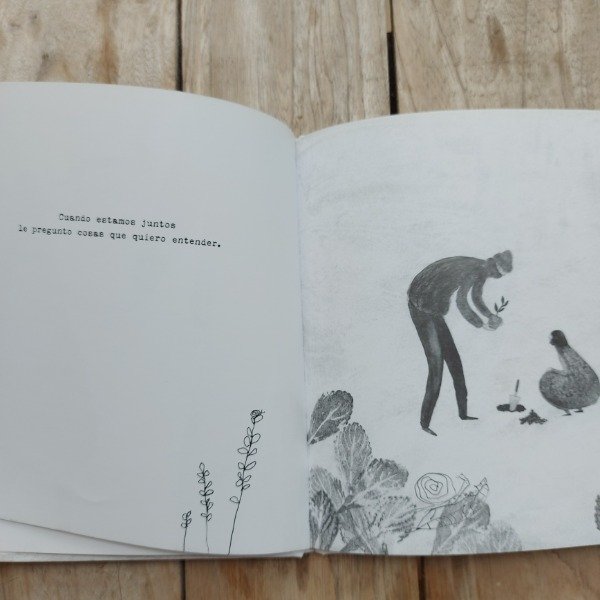 Un libro hermoso, en blanco y negro. Emotivo, profundo. Que página tras página ilustra de una manera cálida y sincera la relación padre e hija. Sus momentos, sus espacios, sus encuentros y desencuentros. Sus deseos. Sus gustos. Sus soledades. Y sus compañías.