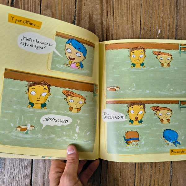 Petit comienza a aprender natación en la escuela, algo que lo entusiasma pero también lo asusta un poco.